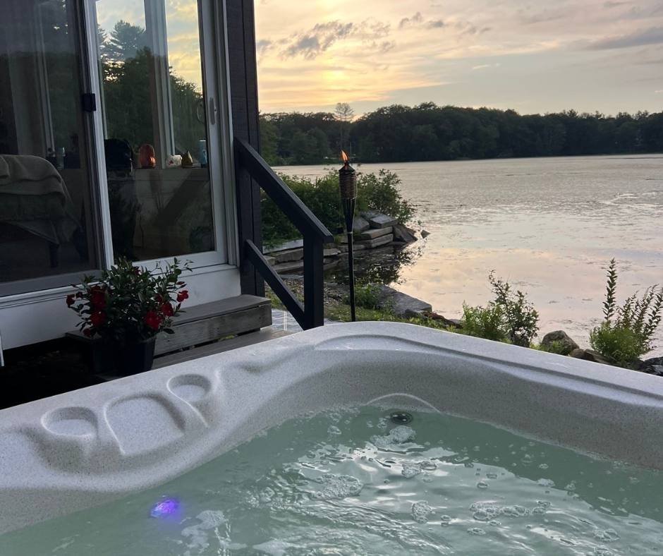 A private hot tub on the patio offers a cozy spot to unwind through every season, from crisp fall nights to snowy winter afternoons.